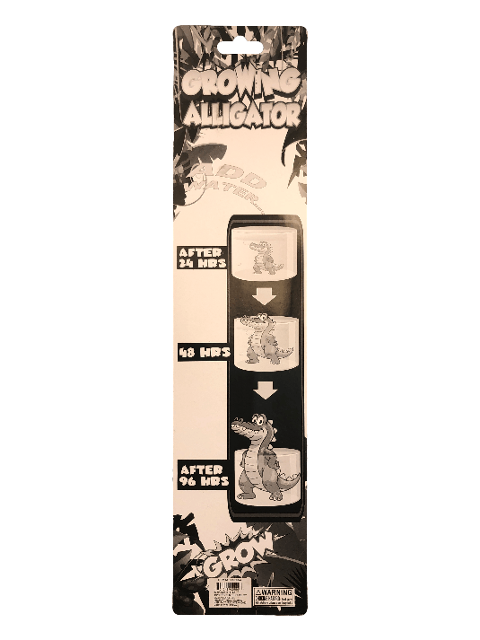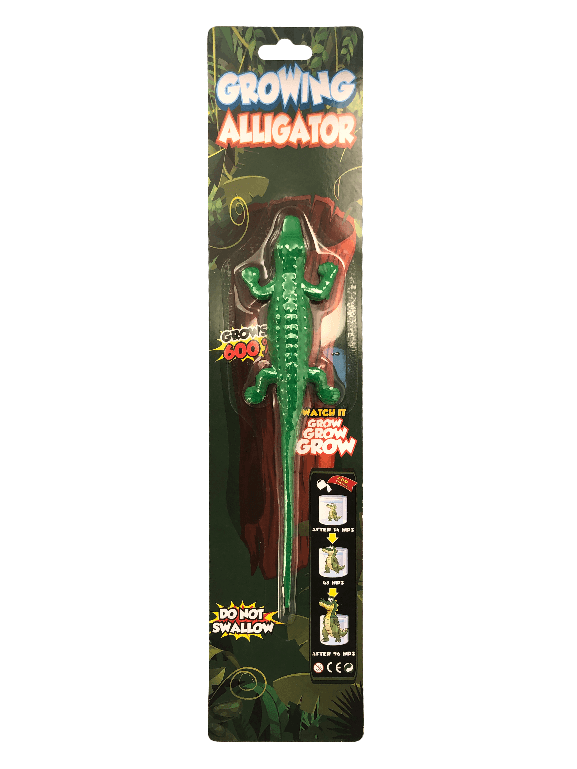 Jumbo Growing Gator $ 2.49 Default Title - $ 2.49 Quantity This product is currently sold out. Please fill in the form below if you'd like to be notified when it becomes available. The EXTRA large version of a classic gator toy favorite. Follow the instructions on the pack to grow this alligator into a BIG soft foam toy! Submerge in water for 48-72 hours and watch her grow grow grow!