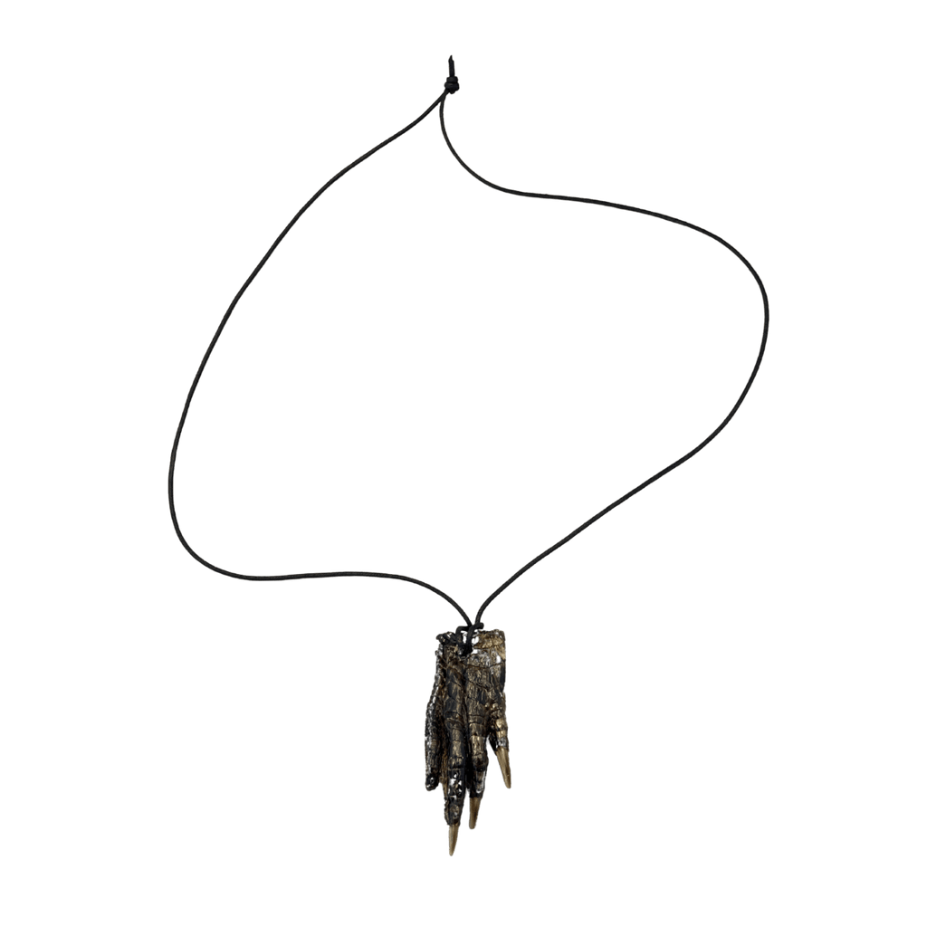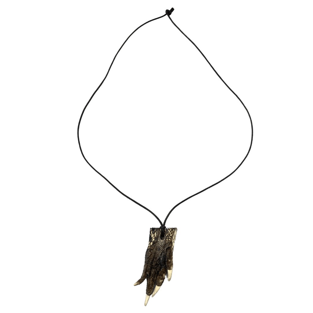 Natural materials, simple style. Designed & created with authentic, sustainably-raised Louisiana alligators right here on the bayou. Bold, natural materials meet classic design to create a style that suits men and women of a range of styles. 12.5" Adjustable black rope necklace with authentic 2"-3" Alligator Foot.